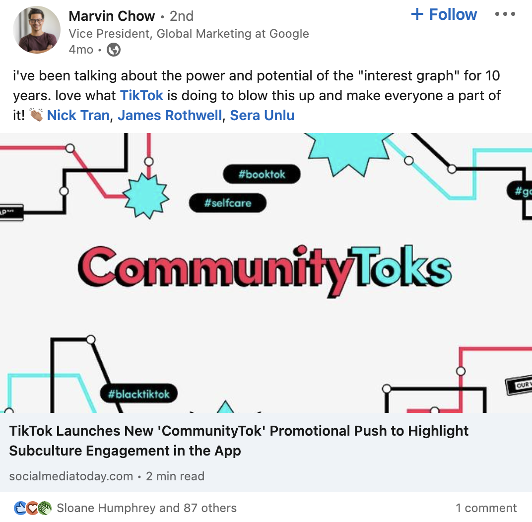 Through CommunityToks, we presented a whole new [and way more effective] way to not only reach, but create alongside new and existing audiences. Learn more from the blog post here.